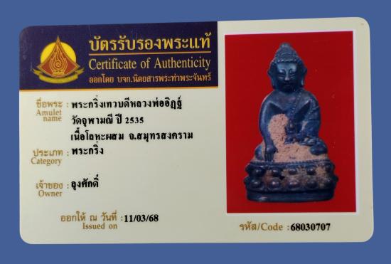 พระกริ่งเทวบดี เนื้อโลหะผสม หลวงพ่ออิฏฐ์ วัดจุฬามณี ปี2535 |