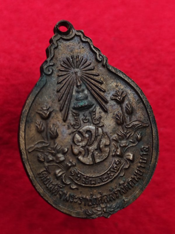 เหรียญ สร้างตึกโรงพยาบาล หลัง ภปร.เล็กจหลวงปู่แหวน ปี 2521 เนื้อทองแดงพร้อมบัตรรับรองระบุมีคราบจากการเก็บ |