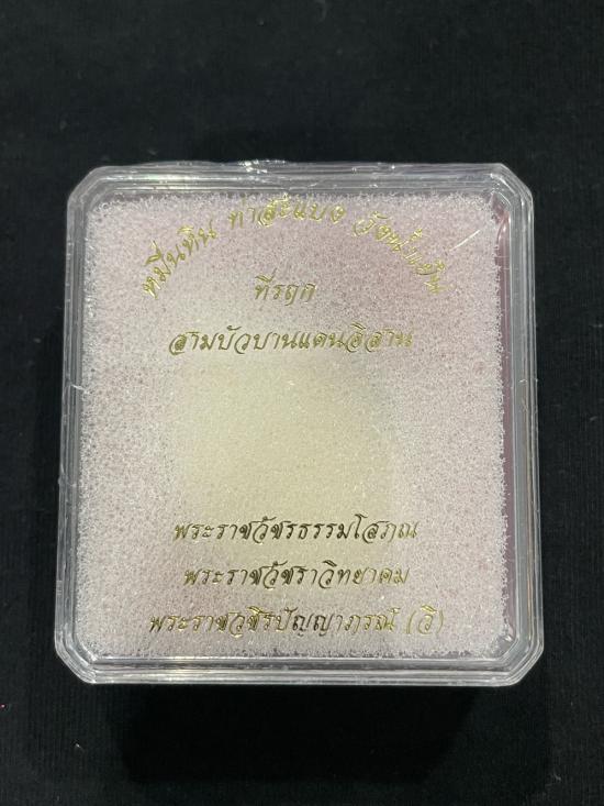 เหรียญสามบัวบานแดนอีสาน หลวงปู่ศิลา สิริจันโท พระอาจารย์ต้อม และพระอาจารย์สุริยันต์ เนื้อฝาบาตร ซีลเดิม |