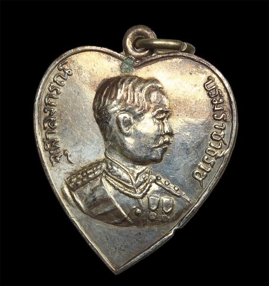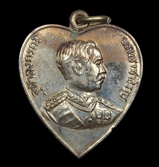 เหรียญหัวใจเสด็จพ่อ ร.5 หลวงพ่อโอภาสี ปี2495 เนื้ออัลปาก้า อาศรมบางมด จ.กรุงเทพ |