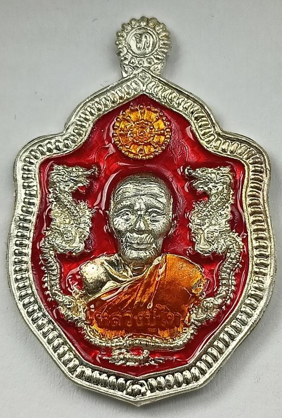 เหรียญมังกรคู่ รุ่น รวยมหาเศรษฐี หลวงปู่ไท สัจฺจวโร (อายุ ๑๐๕ ปี) วัดโคกชาด จ.นครพนม เนื้อเงินลงยาสีแดง เบอร์ 24 พร้อมกล่องครับ (น้ำหนักเหรียญ 18.73 กรัม)