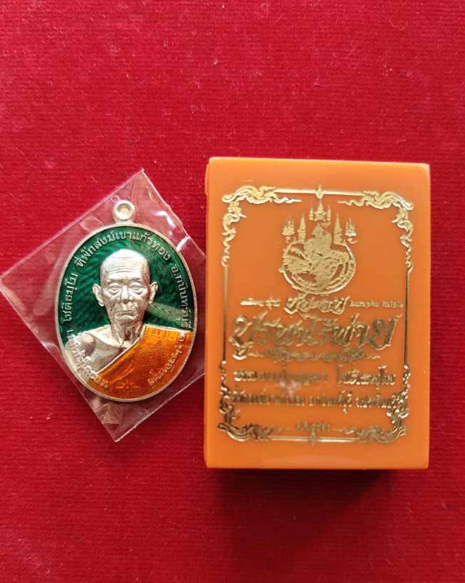 เหรียญชนะจน บูรพาไร้พ่าย เนื้อเงินลงยา ลงยาเขียว จีวรเหลือง หลวงปู่บุญมา สำนักสงฆ์เขาแก้วทอง ตำบลเขาไม้แก้ว อำเภอกบินทร์บุรี จังหวัดปราจีนบุรีno.99 ปี 2562 สร้าง 99 องค์
