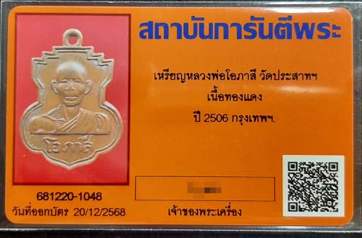 เหรียญหลวงพ่อโอภาสี วัดประสาทฯ เนื้อทองแดง ปี2506 พร้อมบัตรรับรองครับ |