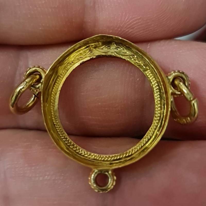 (((กรอบมือ2 ทองคำแท้))) สำหรับลูกอม/เหรียญกลมคณาจารย์ทั่วไป น้ำหนักทอง 3.71กรัม กรอบสภาพสวยๆครับ