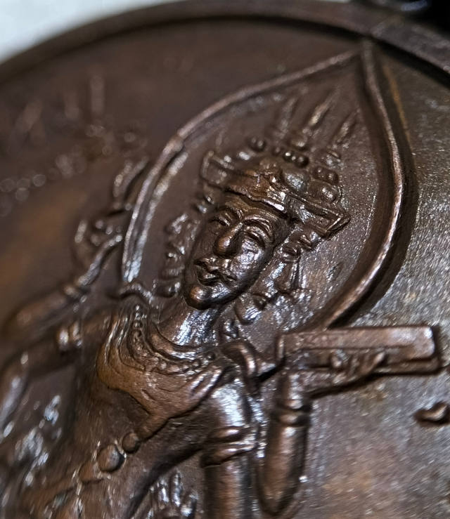 เหรียญท้าวมหาพรหมหลังยันต์แปดทิศ(หยินหยาง) หลวงพ่อพรหม วัดขนอนเหนือ เนื้อทองแดง ปี2527 |