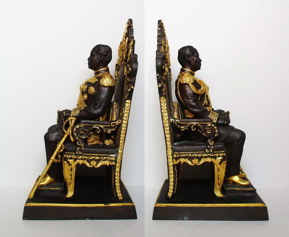 พระบรมรูปรัชกาลที่ 5 วัดหัวลำโพง กรุงเทพฯ พ.ศ.2537 เนื้อโลหะผสมรมดำปิดทองบางส่วน ตอกโค๊ต ตอกเลข องค์พระฯขนาดไซ้ส์ใหญ่มีน้ำหนักมากๆ !!