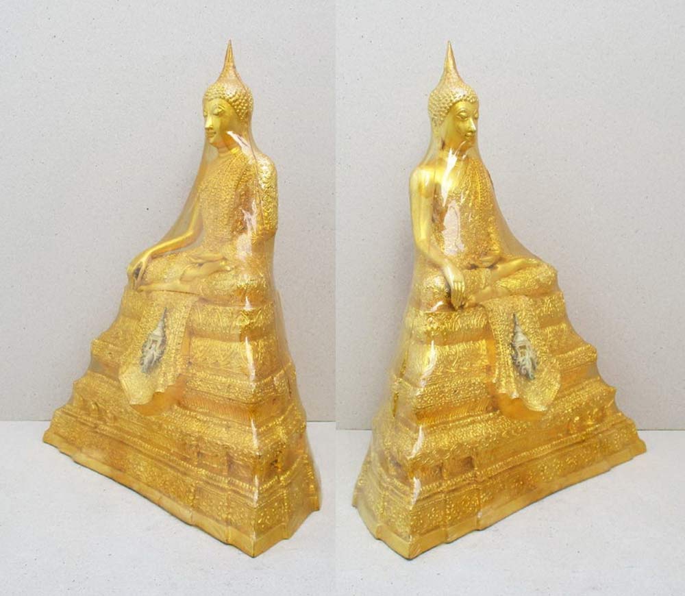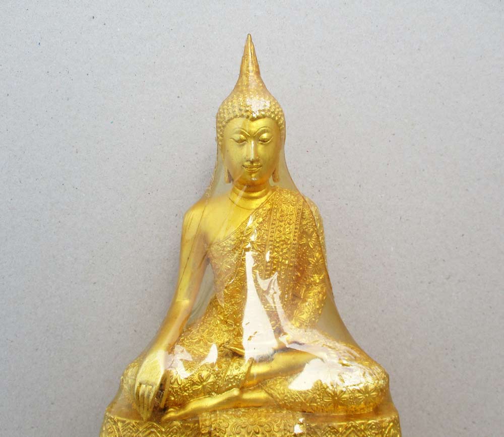 เนื้อโลหะปิดทองทั้งองค์ ห่อหุ้มพลาสติกใส !!