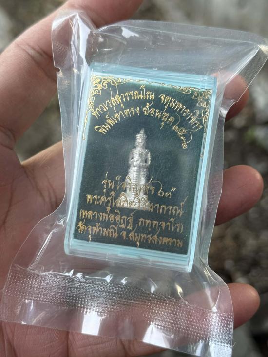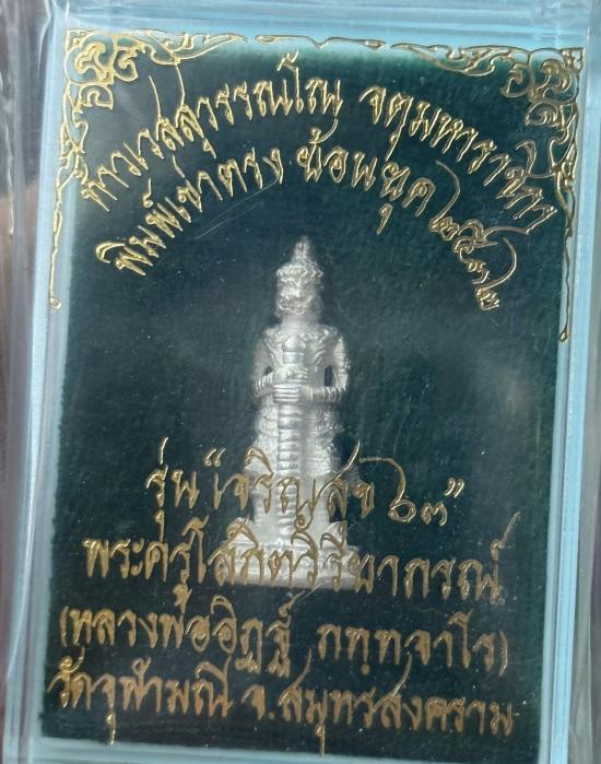 รูปหล่อท้าวเวสสุวรรณ หลวงพ่ออิฏฐ์ วัดจุฬามณี พิมพ์เข่าตรง รุ่นเจริญสุข 63 พ.ศ.2563 #เนื้อเงิน สภาพสวย ไม่แกะซีลลุ้นเลขสวย