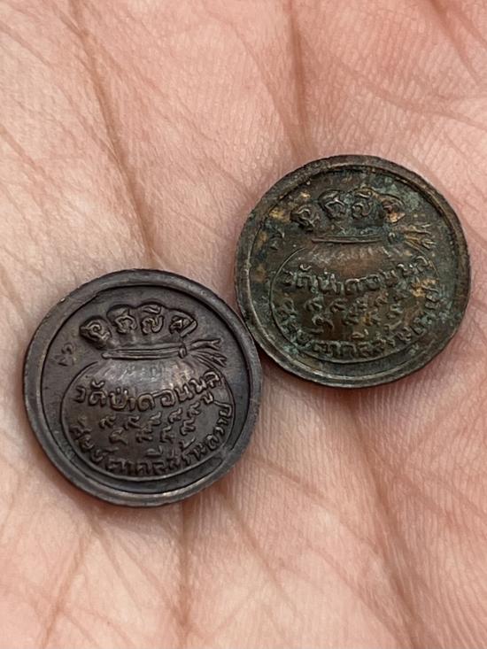 เหรียญเม็ดกระดุมขวัญถุง หลวงปู่คำแสน วัดป่าดอนมูล เชียงใหม่ 2เหรียญ ผิวหิ้งมีคราบไม่ได้ใช้