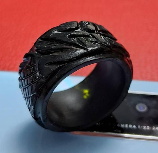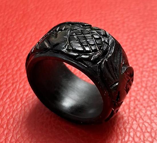 แหวนหยกดำแกะลายมังกร หยกพม่าแท้ 100 % (แสงส่องผ่าน) เส้นผ่าศูนย์กลาง 2.3 ซม. หนา 1.4 ซม. หายากวงใหญ่ๆ ไม่ค่อยได้มาบ่อย ราคาค่อนข้างสูง (กท.54)