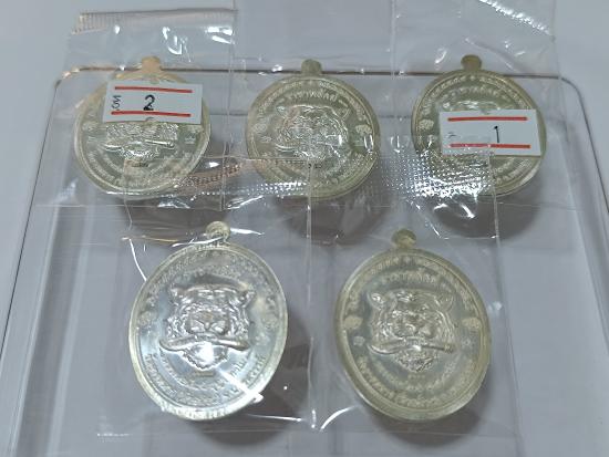 เหรียญ รุ่น ราชาพยัคฆ์ (เสือ2) หลวงพ่อพัฒน์ วัดห้วยด้วน จ.นครสวรรค์ เนื้อเงินลงยา จำนวน 5 เหรียญ