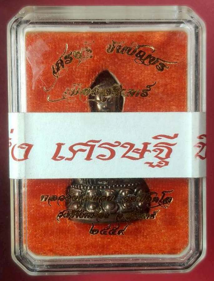 พระกริ่งเศรษฐีชินบัญชร หลวงปู่พวน วัดช้างหมอบ จังหวัดสุรินทร์ ปี 2559 เนื้อนวะโลหะก้นทองแดง หมายเลข 1708 พร้อมกล่องเดิม จัดสร้างจำนวน 1,999 องค์