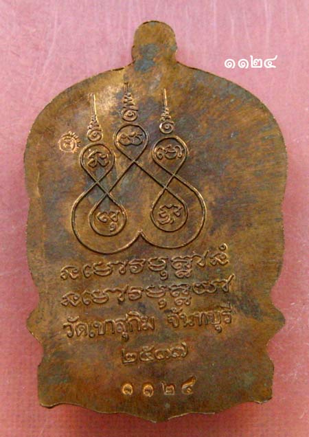 เหรียญนั่งพาน เนื้อทองแดง หลวงพ่อสมชาย วัดเขาสุกิม ตอกโค้ด ส และโค้ด หมายเลข ๑๑๒๔ พิเศษเหรียญนี้เป็นเหรียญปั๊มเขยื้อน หายากพร้อมกล่องเดิมๆ