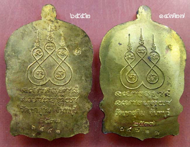 เหรียญนั่งพาน เนื้อทองเหลือง หลวงพ่อสมชาย วัดเขาสุกิม ตอกโค้ด ส และโค้ด จำนวน 2 เหรียญ หมายเลข ๖๕๕๒ และ ๑๔๗๒๗ ได้มาจากคนในพื้นที่