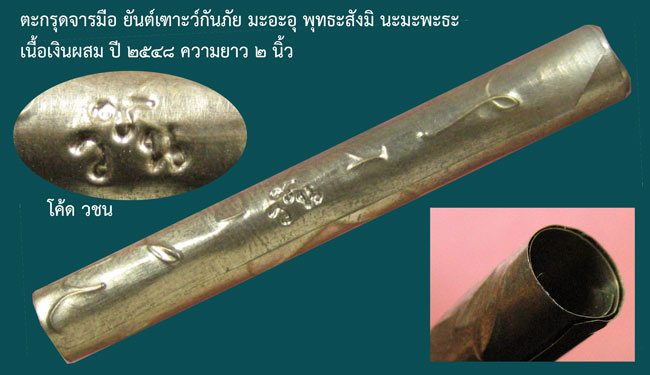 ตะกรุดจารมือ ยันต์เฑาะว์กันภัย มะอะอุ พุทธะสังมิ นะมะพะธะ ตอกโค้ด วชน เนื้อเงินผสม ปี 48 ความยาว 2 นิ้ว ***เคาะเดียว***