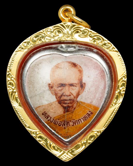หลวงพ่อสุด วัดกาหลง ล็อกเก็ต หัวใจรุ่นแรก ปี 2520 ฉากขาว สร้างราว 50 องค์ เลี่ยมทอง 90 % อย่างดี มีรอยขีดข่วน แต่ไม่รานไม่ร้าว ครับ