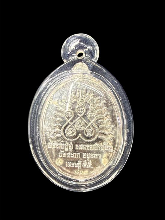 เหรียญรูปใข่ หลวงพ่อทวด เปิดโลกเศรษฐี ๕๕ วัดสะแก เนื้อเงินแท้ ปี 2555 สุดสวย หมายเลข 813