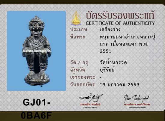 หนุมานหลวงปู่ผาด วัดบ้านกรวด ปี 2551 เนื้อทองแดง พร้อมบัตรรับรองสมาคม