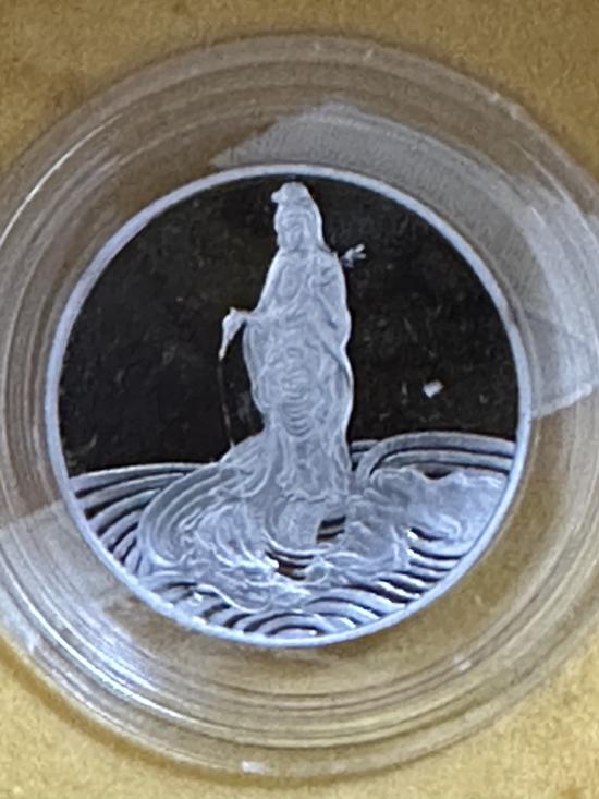 วัดใจเคาะเดียวแดง เหรียญพระโพธิสัตว์กวนอิม ญสส เนื้อเงิน หมายเลข131 สวยงาม (นน.15กรัม)