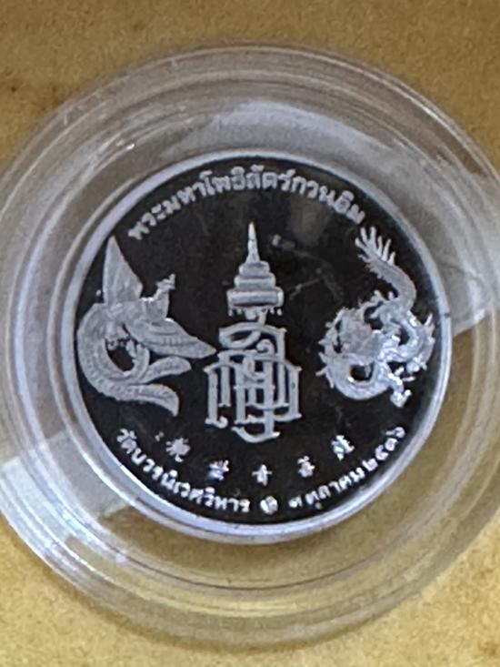 วัดใจเคาะเดียวแดง เหรียญพระโพธิสัตว์กวนอิม ญสส เนื้อเงิน หมายเลข131 หลังหงษ์ มังกร รุ่น 80 พรรษาสมเด็จญาณ วัดบวรนิเวศราชวรวิหาร ปี2536 เนื้อเงินขัดเงา ขนาด 3 เซนติเมตร