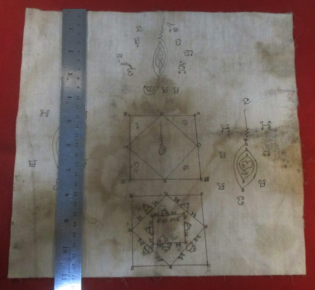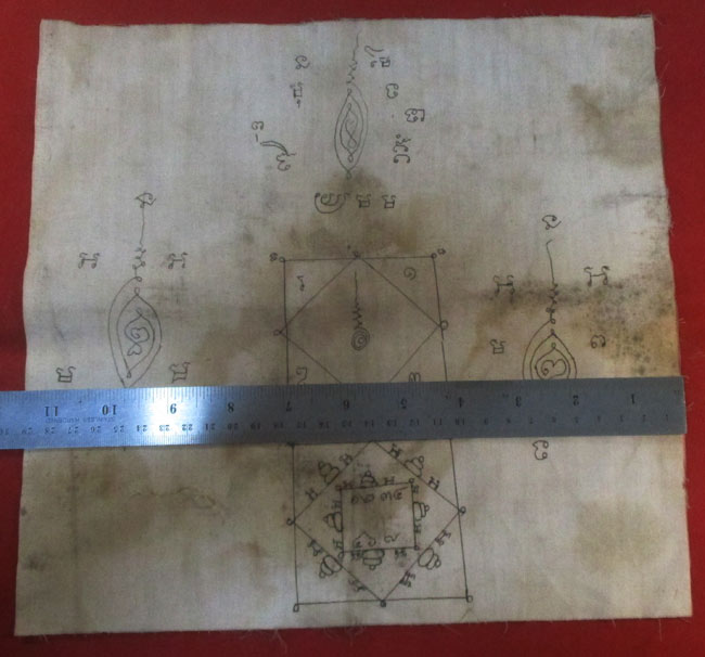 ผ้ายันต์ จารยันต์ด้วยมือ ไม่ทราบที่ เนื้อผ้าดูเก่า ครับ