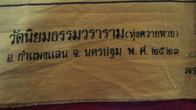 ผ้ายันต์ วัดนิยมธรรมวราราม (ทุ่งควายหาย) อ.กำแพงแสน จ.นครปฐม พ.ศ. ๒๕๒๓ ครับ (พระบ้าน ครับ) |