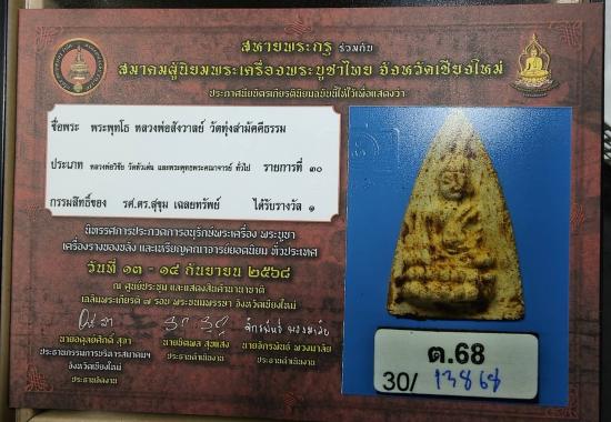 ได้รับรางวัลที่1 นิทรรศการประกวดการอนุรักษ์พระเครื่อง พระบูชา เครื่องรางของขลัง และเหรียญคณาจารย์ยอดนิยม ทั่วประเทศ |