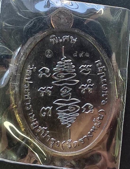 เหรียญยันต์สวนเสาร์ 5 หลวงปู่แผ้ว ปาโร เนื้อนวะโลหะ วัดรางหมัน ปี 2555 เลข891สภาพสวย จมูกเต็ม และเลี่ยมสวยงามพร้อมใช้ กล่องเดิม