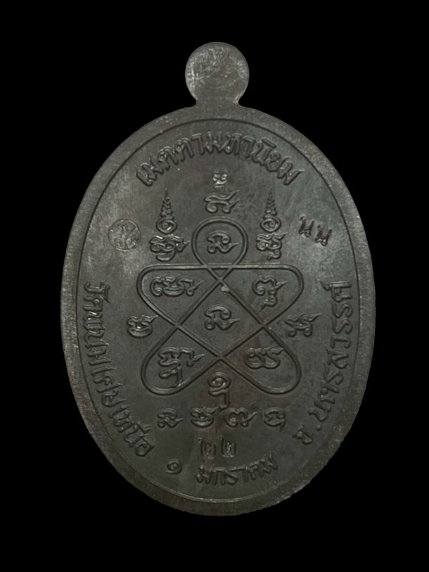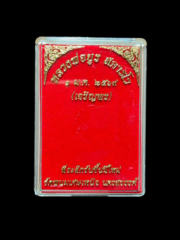 เหรียญเจริญพร หลวงพ่อยูร สคารโว วัดพนมเศษเหนือ จ.นครสวรรค์ เนื้อนวะ ลงยาแดง หน้ากากเงิน ลงยาจีวร หมายเลข 22 |
