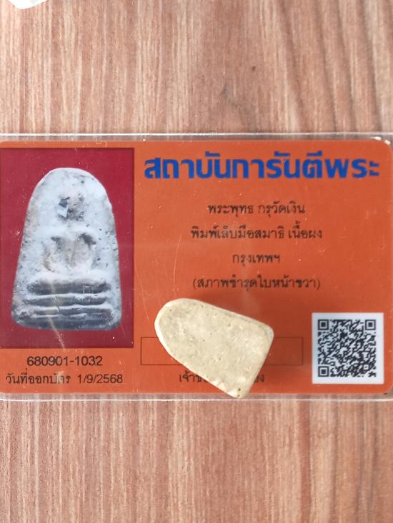 เคาะเดียวแดง+++พระพุทธ กรุวัดเงิน พิมพ์เล็บมือสมาธิ เนื้อผง กรุงเทพฯ มาพร้อมบัตรรับรองพระแท้ ระบุสภาพชำรุดใบหน้าขวา