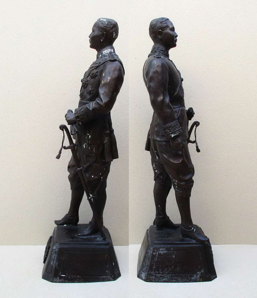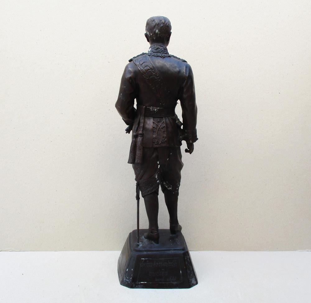 พระบรมรูปบูชาเสด็จพ่อรัชกาลที่ 5 ( พระปิยมหาราช ) วัดนิเวศธรรมประวัติ อ.บางปะอิน จ.อยุธยา พ.ศ.2535 ความสูงรวมฐาน 20.5 นิ้ว เนื้อโลหะรมน้ำตาลมันปูผิวหิ้ง !!