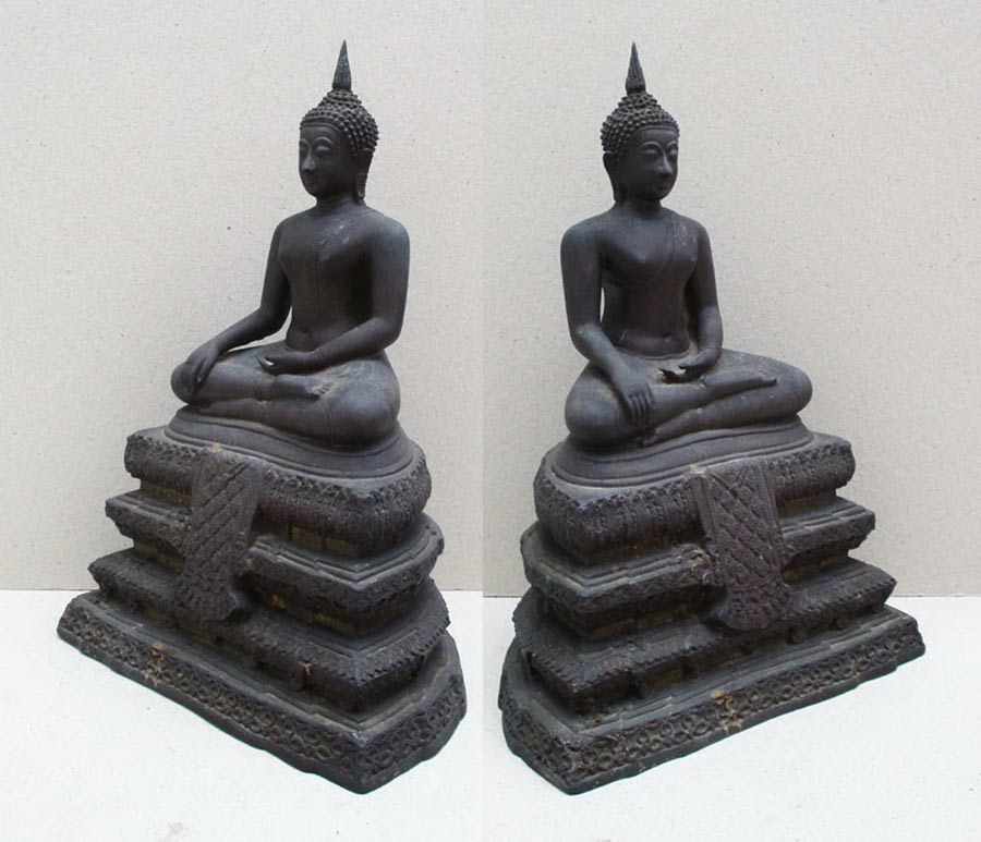ฐานกว้าง 8 นิ้ว....ส่วนลึก 5 นิ้ว ใต้ฐานหล่อหขอบหนาๆ เทหล่อดินไทย !!