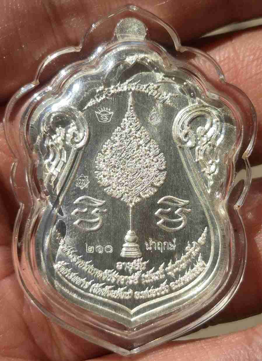 เหรียญเลื่อนสมณศักดิ์หลวงพ่อพัฒน์ เนื้อเงินลงยาราชาวดีหน้าทองคำ ชุดนำฤกษ์ ( หมายเลข 210 )