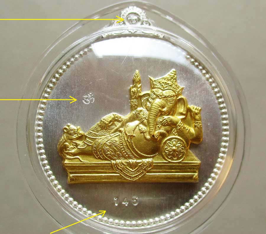 เหรียญพระพิฆเนศ รุ่น เสวยสุข วัดสมานรัตนาราม จ.ฉะเชิงเทรา พ.ศ.2559 โดย บอย ท่าพระจันทร์ เนื้อ 3 กษัตริย์ แยกกจากชุดทองคำกรรมการใหญ่ !!