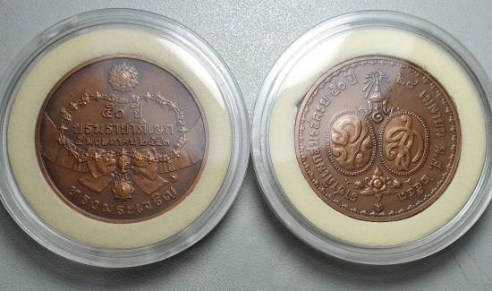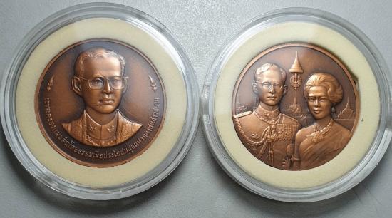 เหรียญ 50ปี (บรมราชภิเษก+ราชาภิเษกสมรส)เนื้อทองแดงซาติน ปี2543 ยกคู่