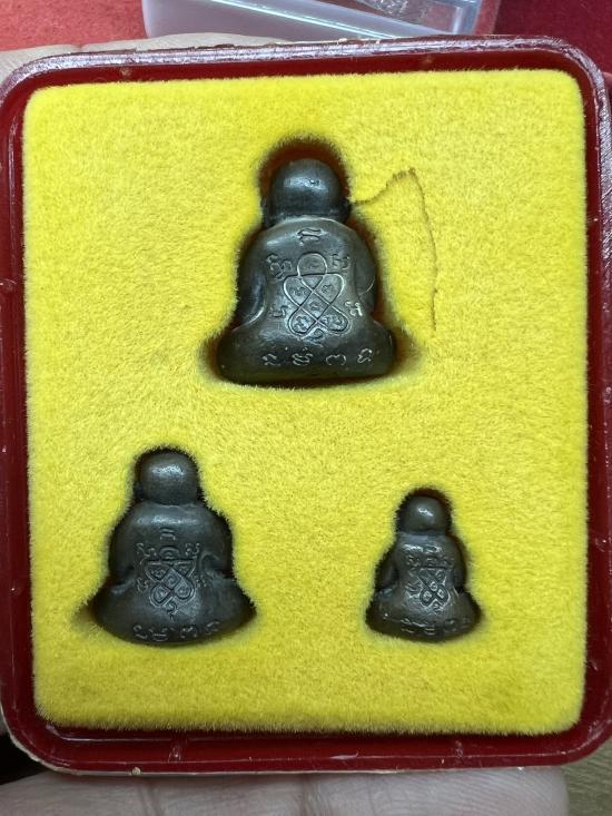 พระปิดตามหาลาภ ปุ้มปุ๋ย ปี 37 เนื้อนวะโลหะ ครบชุด พิมพ์ ใหญ่ , กลาง , เล็ก 3 องค์ หลวงพ่อสาคร วัดหนองกรับ ( พร้อมกล่องเดิมจากวัด )