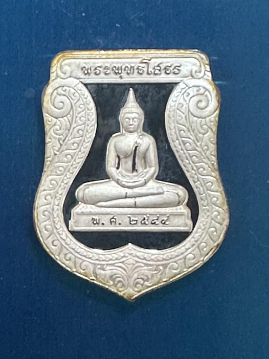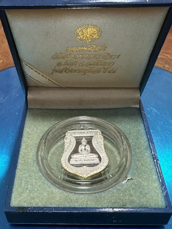 วัดใจเคาะเดียวแดง เหรียญเสมาหลวงพ่อโสธร เนื้อเงินขัดเงาพ่นทราย รุ่นสร้างอุโบสถ ปี2544 จ.ฉะเชิงเทรา (นน.13กรัม)