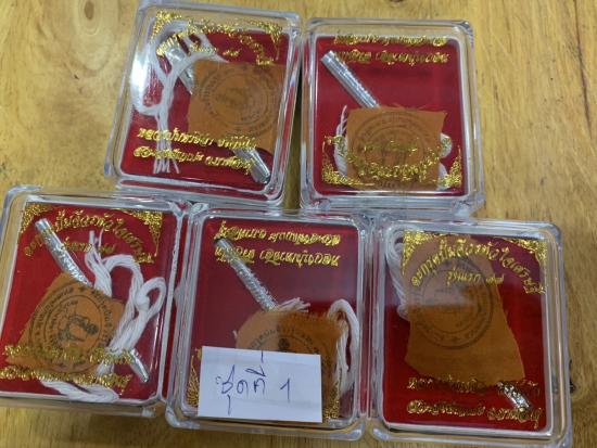 เนื้อเงินกำลังขึ้น ทีเดียว 5 กล่อง ตะกรุดปั้มจีวรหัวใจเศรษฐี รุ่นแรก 77 หลวงปู่ศิลา ยุคต้น จ.กาฬสินธุ์ เนื้อเงิน ได้ครบทั้ง 3 รายการ ตะกรุดเงิน ,จีวร ,สายสิญจน์ ตอกโค๊ด สวยมาก กล่องเดิมครับ 1