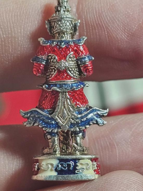 เคาะเดียว.... ท้าวเวสุวรรณ หลวงปู่รอด วัดโคกกรม สุรินทร์ เนื้อเงิน ลงยาธงชาติไทย หมายเลข6