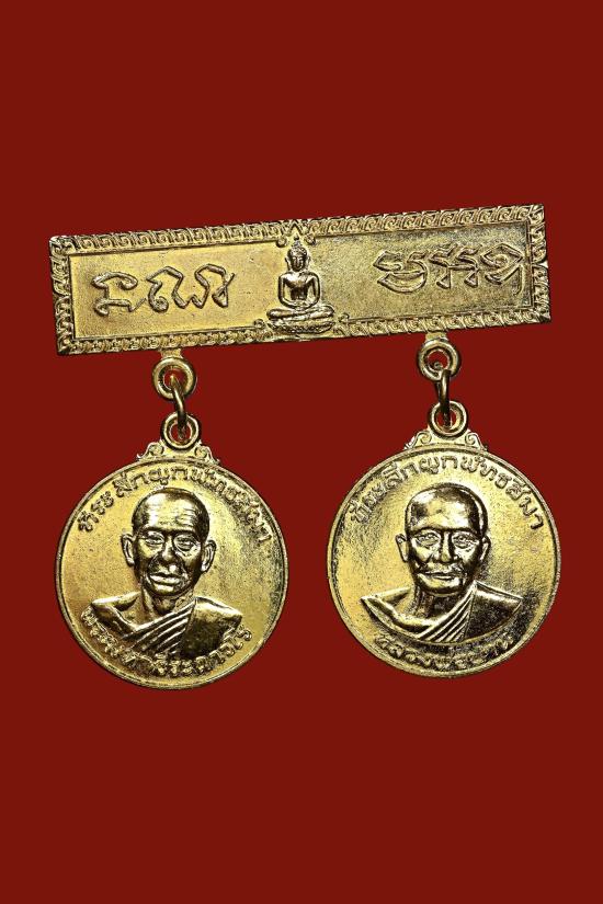 เป็นเหรียญโลหะชุบสีทอง เป็นเหรียญคู่กัน เหรียญหนึ่งเป็นรูปหลวงพ่อปาน วัดบางนมโค มีข้อความด้านหน้าเขียนว่า ที่ระลึกผูกพัทธสีมา หลวงพ่อปาน ด้านหลัง เป็นยันต์ประจำองค์หลวงพ่อปาน และลงวันที่ 23 เมษายน 2520 ส่วนอีกเหรียญหนึ่งเป็นรูปหลวงพ่อฤาษีลิงดำ ด้านหน้าเขียนข้อความว่า ที่ระลึกผูกพัทธสีมา พระมหาวีระถาวโร ด้านหลังเป็นรูปยันต์เกราะเพชร แขวนคู่กับเข็มกลัดยันต์ท้าวมหาชมภู