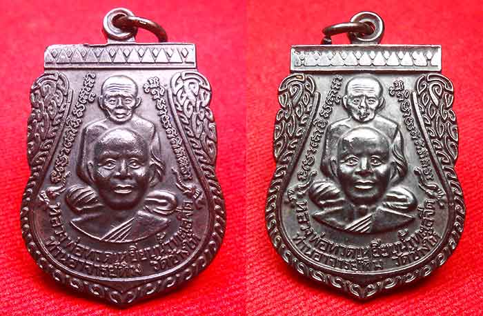 2 เหรียญ เสมาใหญ่พุทธซ้อน เนื้อทองแดงรมดำ หลวงพ่อทวด วัดช้างให้ หลังเจดีย์ เสาร์ 5 ปี 2555 |
