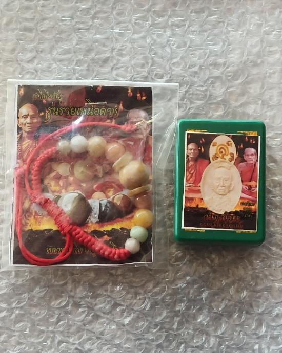 เหรียญเจริญพร เนื้อกระดูกช้าง +กำไลบูชาครู รุ่นรวยเหนือดวง หลวงปู่เถิง วัดอาลัย จ.ศรีสะเกษ |