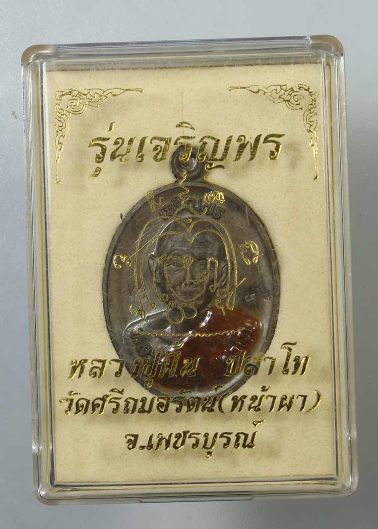 วัดใจ**เหรียญเจริญพรบน หลวงปู่ฝั้น ปสาโท วัดศรีถมอรัตน์ (หน้าผา) ปี 2564*{ เนื้อชนวน+จีวรลงยา+มีรอยจาร }*พร้อมกล่อง....สวยครับ
