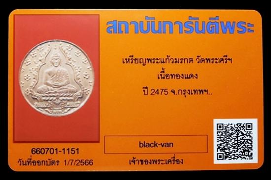 เหรียญพระแก้วมรกต วัดพระศรีฯ ปี 2475 เนื้อทองแดง พร้อมบัตรรับรอง G-pra ครับ |