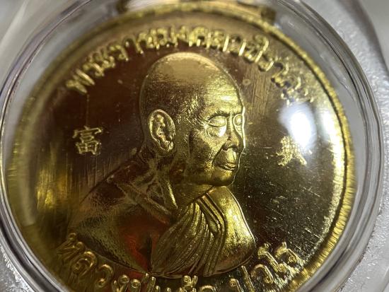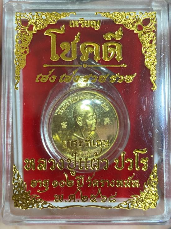 หลวงปู่แผ้ว ปวโร วัดรางหมัน เหรียญรุ่น โชคดี (เนื้อฝาบาตร) พร้อมเลี่ยม
