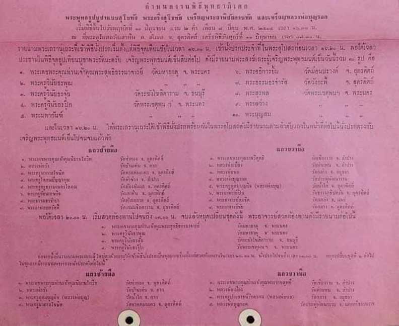 พิธีพุทษาภิเษกใหญ่ วันพฤหัสบดี ที่ 10 มิ.ย. 2514 ณ พระอุโบสถวัดเสาหิน อ.ลับแล จ.อุตรดิตถ์ โดยพระเกจิคณาจารย์ชื่อดังจาก ภาคเหนือ ภาคกลาง ภาคใต้ และเกจิดังในจังหวัดอุตรดิตถ์หลายรูป อาทิ