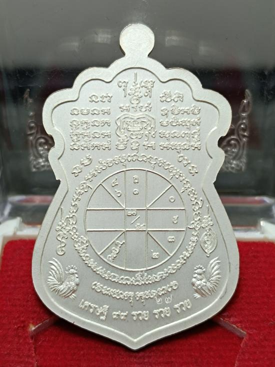 @@ เหรียญเสมา ดวงเศรษฐี๙๙ รวย รวย รวย หลวงพ่อพัฒน์ วัดห้วยด้วน (ขนาดเหรียญสูง 4.0 ซ.ม.) เนื้อเงิน ลงยาจีวร หมายเลข 27 พร้อมกล่องครับ