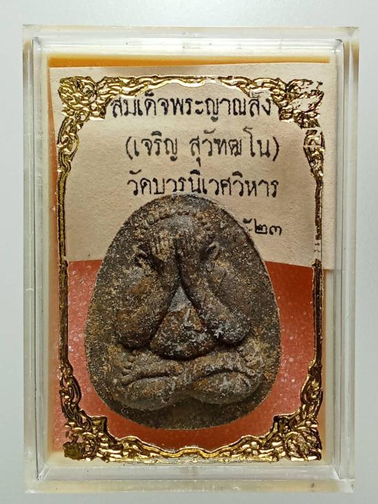 เคาะเดียว กล่องเดิมพร้อมใบฝอย พระปิดตายันต์ดวงเล็ก เนื้อผงใบลานดำ ตังอิ๊วประทุ สอดตะกรุดเงิน สมเด็จพระญาณสังวร(เจริญ สุวัฑฒโน ปธ.๙) วัดบวรนิเวศวิหาร ๒-๓ ตุลาคม ๒๕๒๓ |