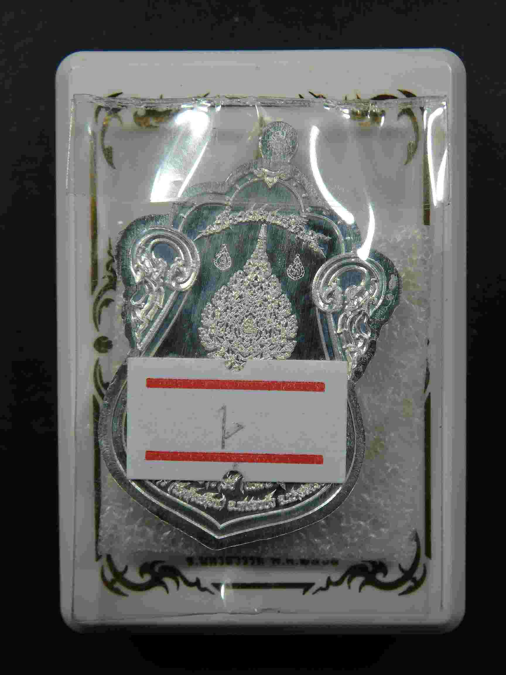 เหรียญเสมาเลื่อนสมณศักดิ์ หลวงพ่อพัฒน์ วัดห้วยด้วน จ.นครสวรรค์ เนื้อเงินหน้ากากทองคำลงยาขอบ เลขโค๊ตนัมเบอร์ ๒๙๙๘ ซีนเดิม ๆ พร้อมกล่อง