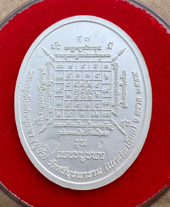 เหรียญเพชรบูรพา ปี55 เนื้อเงินลงยาสีแดง หมายเลข57 กล่องเดิม เสกถึง2วาระและเสกเต็ม1ไตรมาส จัดสร้างน้อยเพียง2,555เหรียญเท่าปีสร้าง ราคาจอง3,000บาท